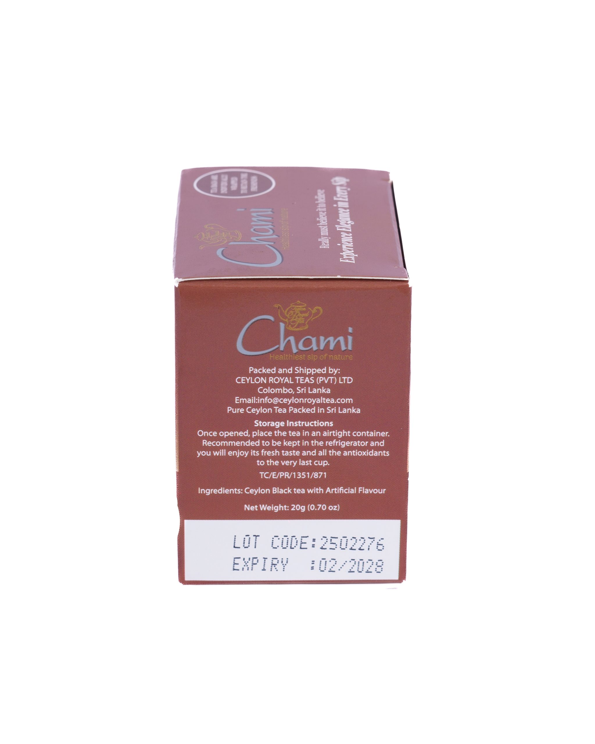 Indulge in the rich and aromatic taste of Chami Chai Spice Tea, a perfectly balanced blend of premium tea leaves and traditional spices. Each cup delivers a warm, bold flavor with a delightful spicy aroma that awakens your senses.